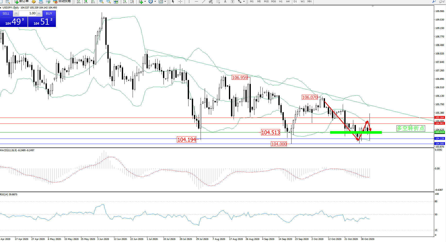 美元兑日圆处于104.492附近宽幅震荡,美元指数大幅回落,开票仍在进行中,且因拜登在威斯康星州领先,且密歇根州开票率90%,票数差距缩小,特朗普胜选预期降温,出现争议结果的可能性上升,日元获得一定避险需求支撑。 日本央行行长黑田东彦:病毒对经济影响的不确定性高,如有必要将毫不犹豫的加码宽松,重要的是要创造一个环境,使受到大流行冲击的企业不会陷入现金短缺,顺利恢复运营。日本经济正在复苏,但由于大流行影响,经济仍处于严峻状态,若经济不确定性加剧,市场稳定性可能下降并损害家庭和企业信心,金融市场依然紧张,日本没有看到通货紧缩时期那样的大范围降价,如果经济恶化超过预期,可能会影响日本的金融体系,日本出口增加且预计将继续增长,主要受汽车出口提振,日本经济可能继续呈现改善趋势,但步伐可能放缓,经济前景的不确定性极高,日本央行认为外汇稳定走势反映经济基本面是可取的,日本将密切关注美国大选后的市场波动,由于全球经济前景的不确定性,全球市场走势仍然紧张,数字化对日本经济增长很重。