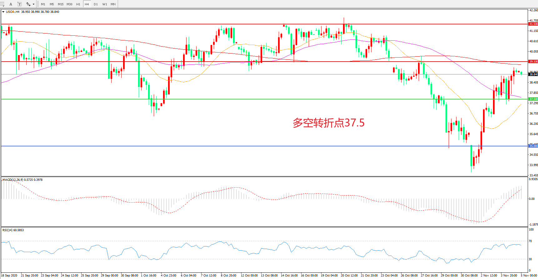周三(11月4日),EIA原油库存出乎市场意料不增反降,市场对供应过剩的担忧有所缓和,美国WTI原油连续第三日上涨,收报38.84美元/桶。虽然疫情冲击近期给油价沉重的压力,但OPEC仍然有望推迟增产给了油价有利的支撑。