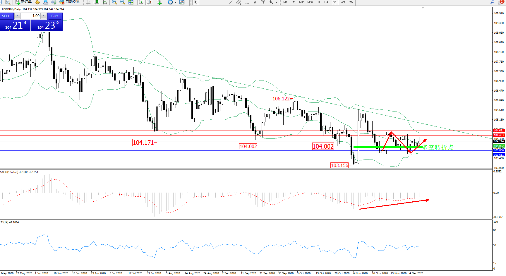 美元兑日圆纠结于104.206附近整理,市场情绪维持谨慎,在基本面并无太多新消息变化的状况下,美元指数依旧维持在91下方的低位,而投资者对避险日元的买需也并未得到进一步提振。在英国脱欧变数犹存且全球疫情仍然肆虐的背景下,避险货币也很难遭到彻底全面的抛售。美国制药巨头辉瑞等研发的新型冠状病毒疫苗已在英国开始接种。辉瑞与日本政府就明年上半年供应1.2亿剂(6000万人份)疫苗达成了基本协议,但需要经过日本国内临床试验和审查手续,预计接种最快在3月前后开始。日本政府表示,要允许在国内接种,不仅需要海外数据,还有必要提交国内的临床试验结果并实施审查。辉瑞正在日本开展第一、二期临床试验,相当于分三个阶段的临床试验中的初期阶段。公关负责人称“正在按计划推进”。