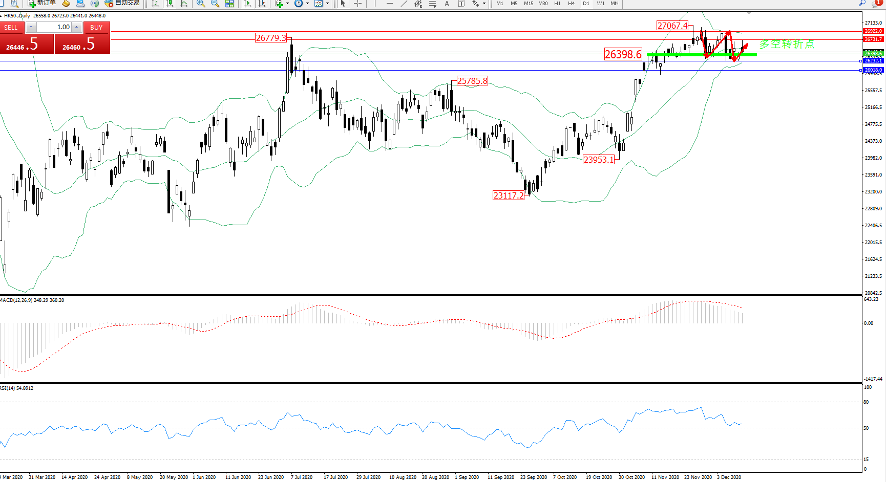 香港恒生指数12月11日(周五)收盘上涨95.28点,涨幅0.36%,报26505.87点;港股主要指数均收涨,恒生科技指数涨0.68%。大型科技股美团、阿里、腾讯皆有涨幅;黄金股、港口航运股、物管股、高铁基建股普遍弱势。泡泡玛特首日上涨收涨79.22%,居港股市场涨幅榜首。今日南下资金净流入14.28亿港元,大市成交额为1359.14亿港元。据央视,香港特区政府卫生署卫生防护中心11日下午介绍,截至当日零时,香港新增86例新冠肺炎确诊病例,包括本地感染病例81例,其中37例无感染源头,输入性病例5例。香港累计报告新冠肺炎确诊病例7377例。据港媒,香港与科兴生物、辉瑞签署有关购买新冠疫苗的协议,并与阿斯利康洽谈购买疫苗。据悉,香港将向科兴生物购买750万剂新冠疫苗,将从1月起开始收到科兴生物疫苗;将向辉瑞购买750万剂新冠疫苗,将从第一季度开始接受辉瑞疫苗的交付。香港特区行政长官林郑月娥表示,香港计划在2021年为大多数居民免费接种疫苗。