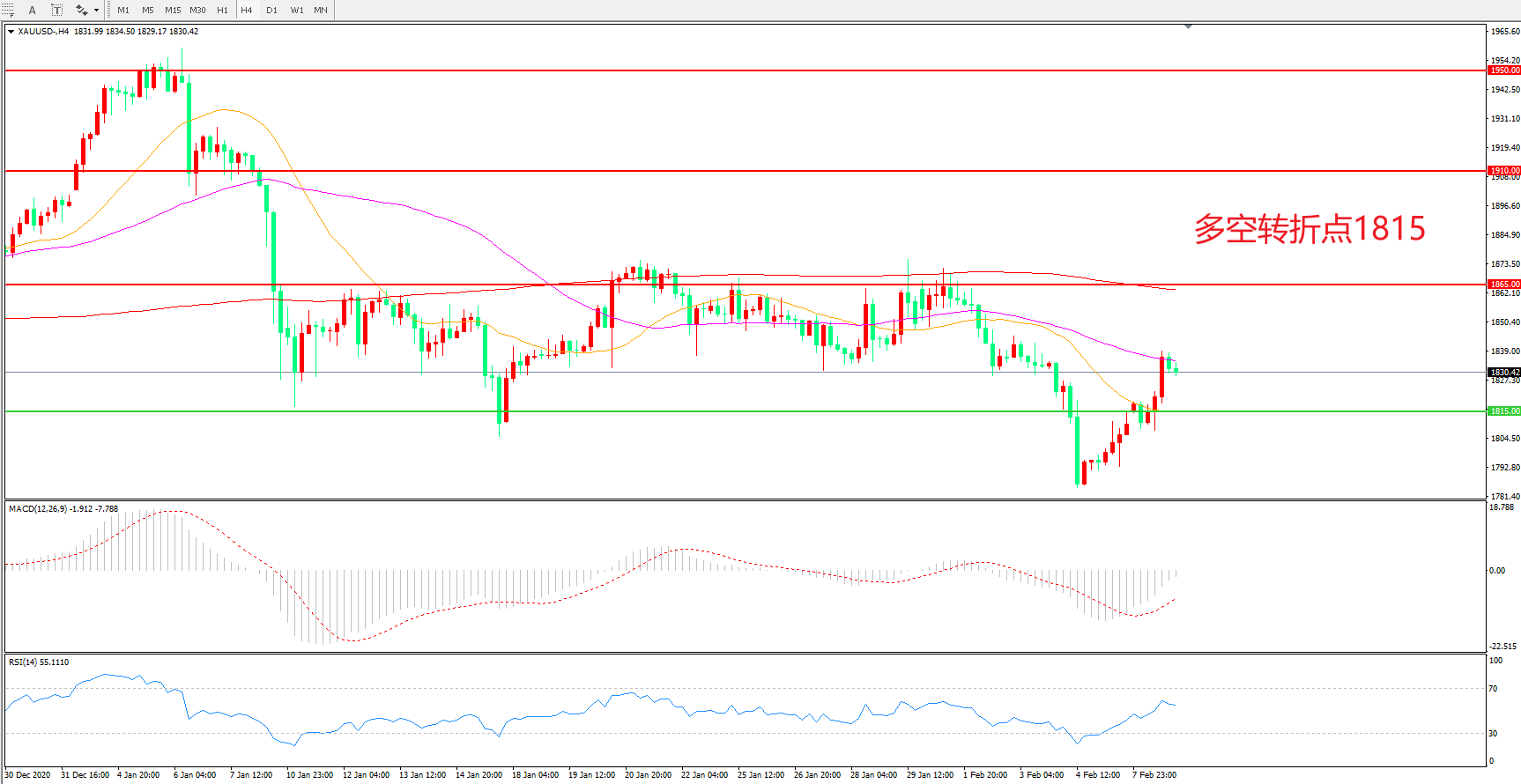 交易策略:在1815.00之下看涨,目标1865.00 1910.00