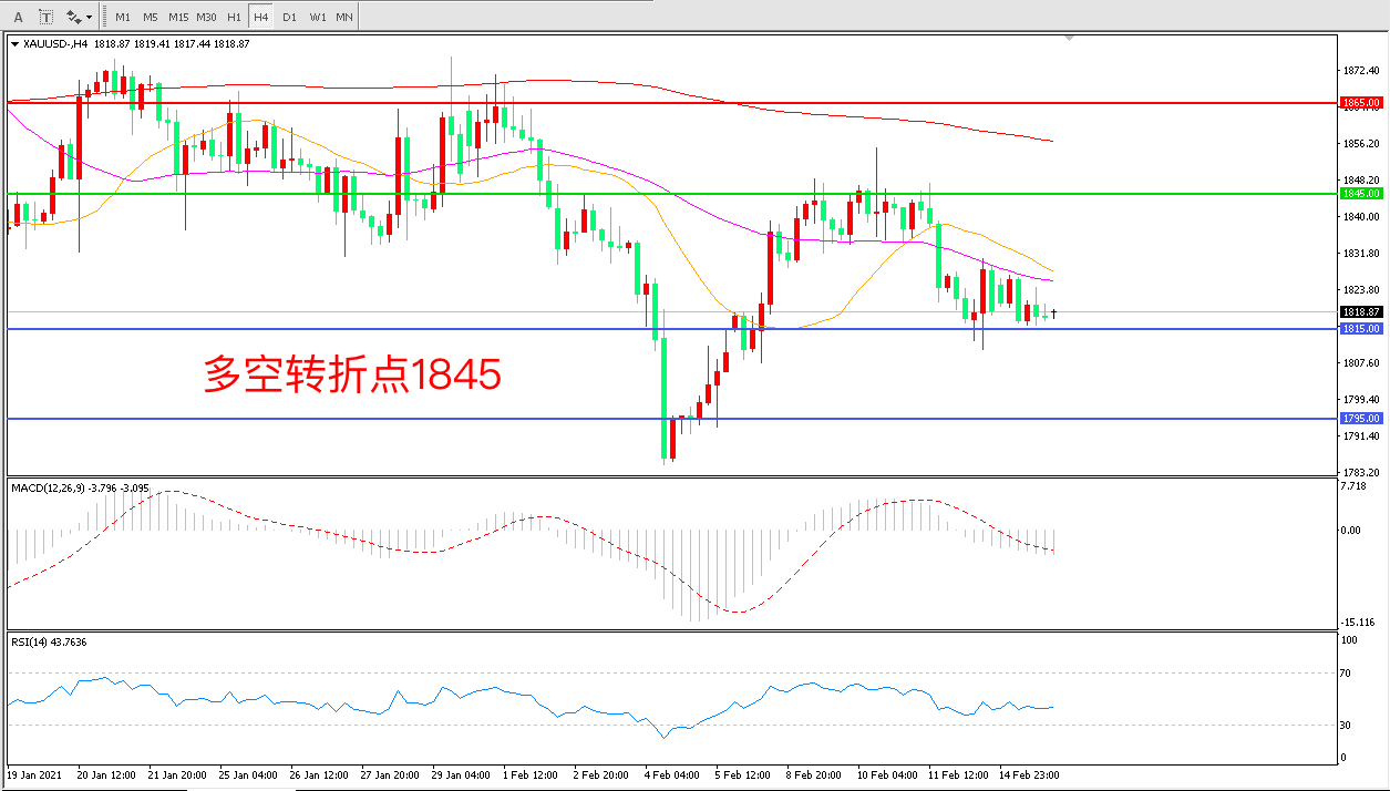 交易策略:在1845.00之下看跌,目标1815.00 1795.00