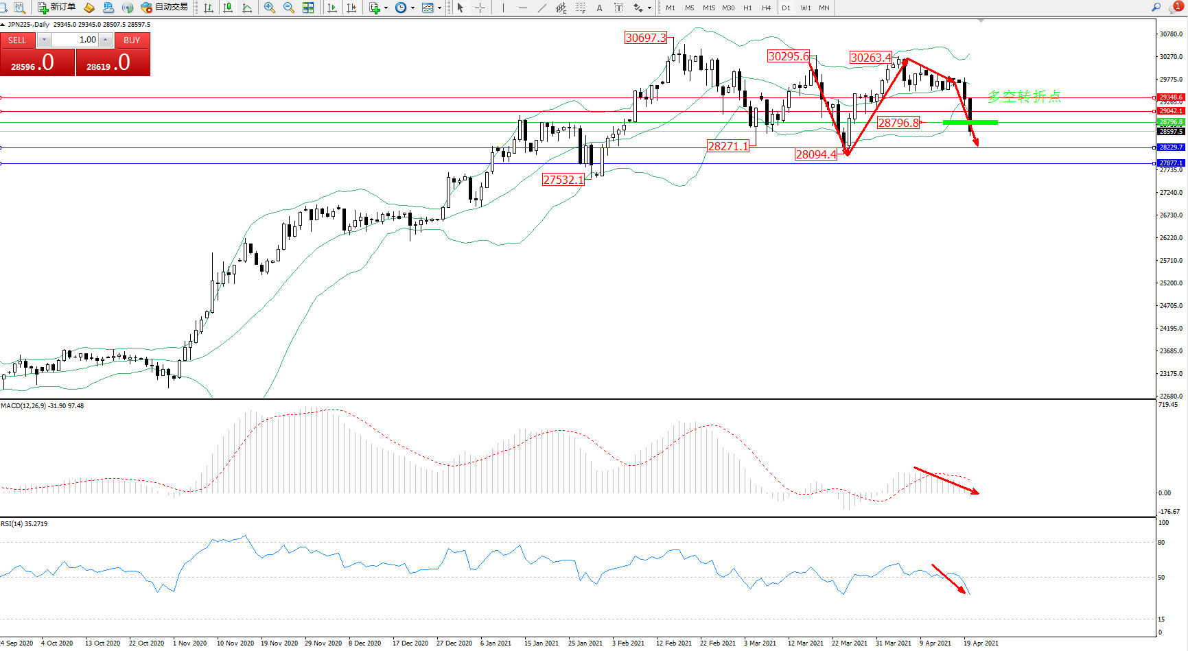 日经225指数4月20日(周二)收盘下跌580.87点,跌幅1.96%,报29104.50点。日本股市也同样受挫,日经225指数一度下跌超过2%,日本经济大臣西村康稔表示,对疫情危机恶化的前景有着“强烈预感”,并称该国两大都会区东京和大阪的形势尤为严峻,实施紧急状态的可能性正“一触即发”。日本央行:日本银行的职能运作顺利,银行的海外贷款质量整体保持高水平,新冠肺炎疫情后,银行仍面临低利率和结构性问题,低利率和结构性因素即使在疫情影响消退之后,也会对金融机构的获利施加下行压力。据相关人士透露,东京奥组委将推迟至6月再作出东京奥运会国内观众入场限制的决定。东京奥组委将在本月末召开的东京奥运会五方会议上提出该建议。