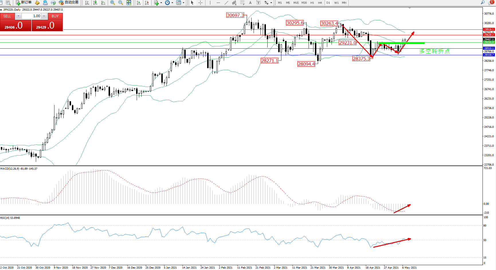 日经225指数5月7日(周五)收盘上涨29.13点,涨幅0.10%,报29360.50点。日本首相菅义伟宣布疫情紧急状态扩大至另外两个病例增加的地区,以期在距东京奥运会召开不到三个月之际,遏制疫情。日本周五宣布将紧急状态扩大至工业区爱知县以及南部的福冈县,还将东京、大阪、兵库和京都的紧急状态延长至5月底。“大阪和东京的人员流动大幅减少了,措施开始显现成效,”菅义伟对疫情工作组表示。“然而,新增确诊病例高企,尤其是在主要城市,而且医院病床短缺”。扩大后的措施将覆盖约40%的日本经济和大部分主要城市地区,引发双底衰退的风险上升。日本疫苗接种进展缓慢,目前为止仅有不到2%的人口接种了疫苗,令菅义伟几乎没有可用于控制疫情发展速度的工具。东京奥运会定于7月23日开幕。东京奥组委主席桥本圣子对记者表示,关于报道称国际奥委会主席Thomas Bach于5月中访日的计划未作出任何决定,但在紧急状态下,这将是“困难的”。