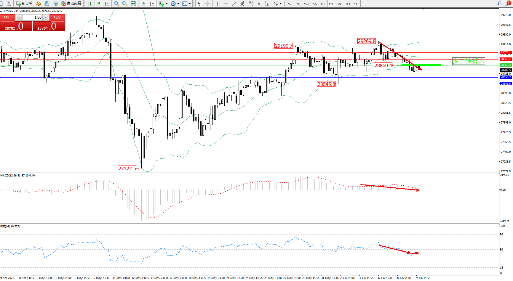 技术点评:长时间维持在布林带指标通道内宽幅震荡后,高位抵达29269附近节点遇阻回撤,触及下轨附近弱势徘徊中,空头动力有进一步向下移动态势,布林带指标呈缓慢张口走势持续中,MACD指标处于0轴线附近弱势徘徊后进入空头区域震荡,RSI指标跌破50均衡线进入空头区域弱势徘徊中;