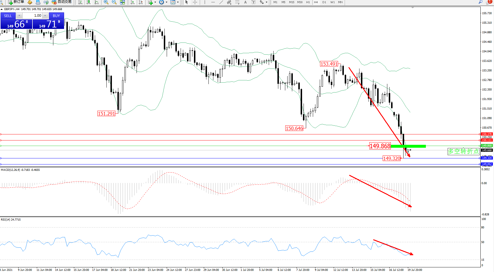 交易策略:149.868下方看跌,目标149.320、149.052