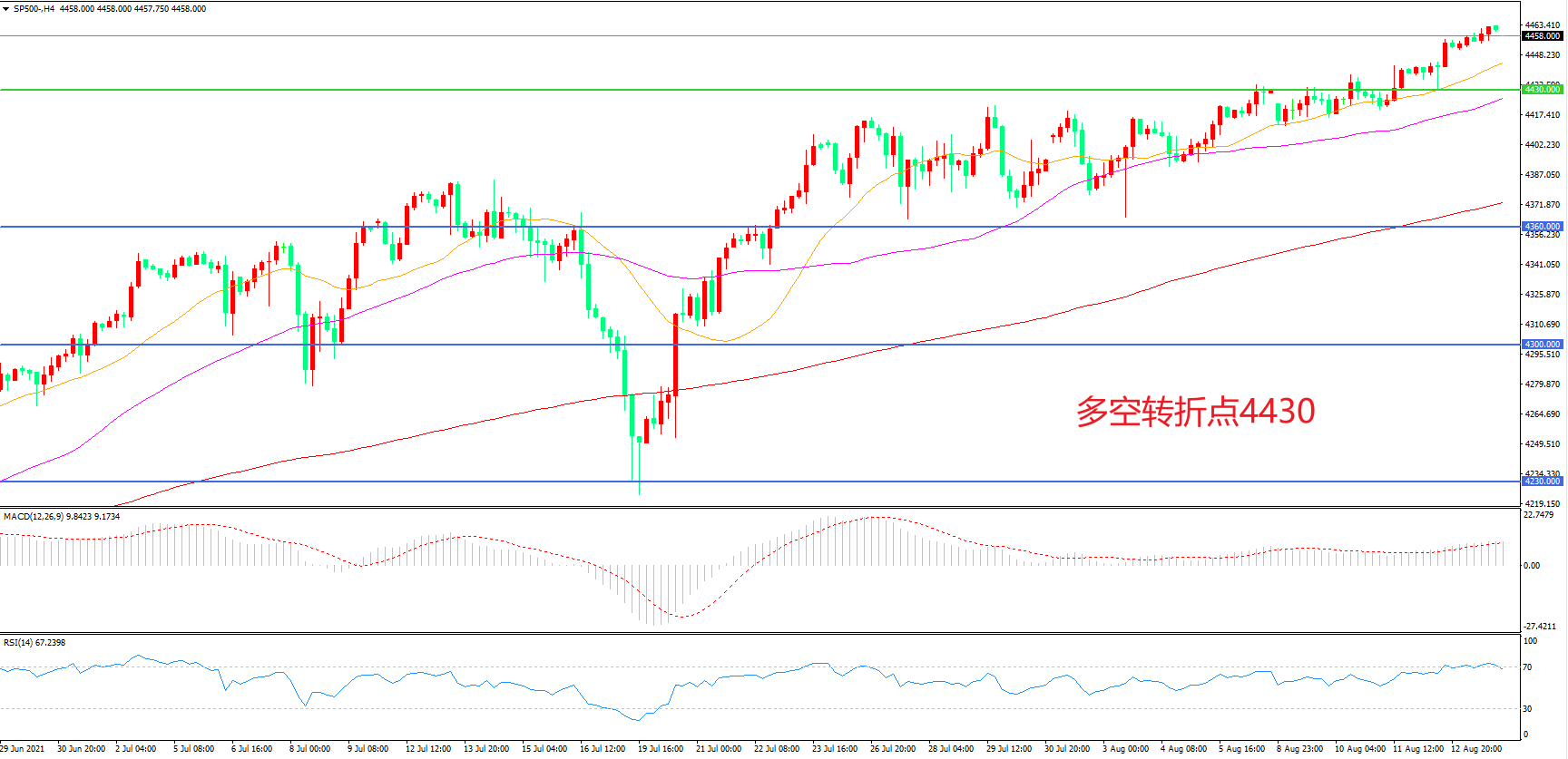 多空转折点:4430.00