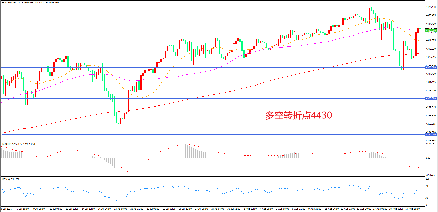 上周五(8月20日),市场担心在美联储等主要央行即将开始回撤宽松货币政策之际,新冠疫情再度来袭将拖延全球经济复苏,美股周五虽然走高,仍难掩全周累跌的颓势,标普500小幅拉升,收报4433.75点。本周全球瞩目的2021年杰克霍尔全球央行年会即将召开,市场届时将从鲍威尔的讲话中捕捉更多关于缩减购债规模计划的信号。