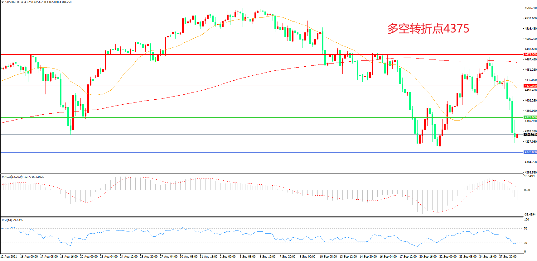 周二(9月28日),受美国国债收益率上升、对通胀持续加剧的担忧以及债务上限谈判引发的广泛抛售推动,美股遭遇“断崖式”下跌,标普500创逾四个月最大跌幅,收报4346点。目前国会两党在债务上限、支出法案和可能的增税问题上反复无常,给投资者的整体心理带来了压力,并导致了相当大规模的抛售,如果美国最终发生债务违约将导致美股出现更大幅度的下跌。