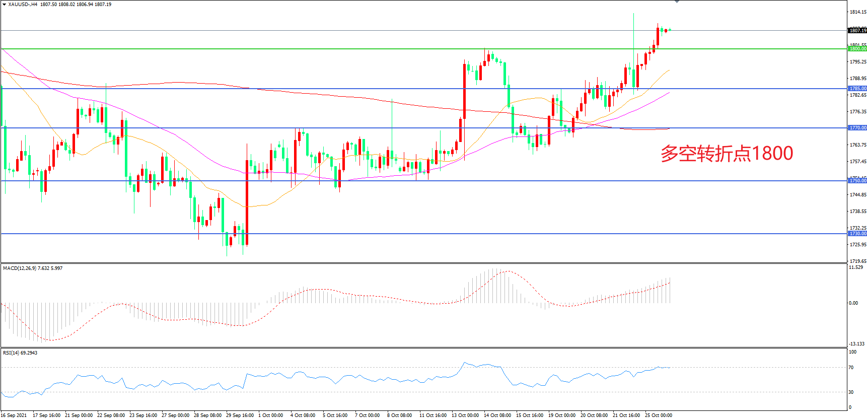 交易策略:在1800.00之上看涨,目标1830.00 1845.00