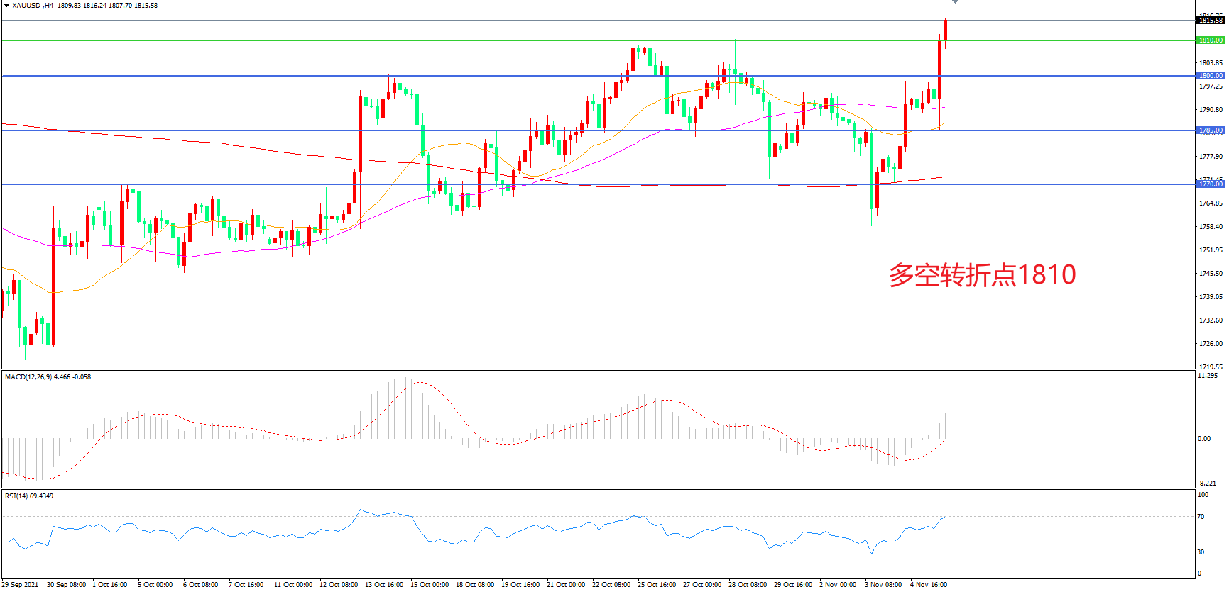 交易策略:在1810.00之上看涨,目标1830.00 1845.00
