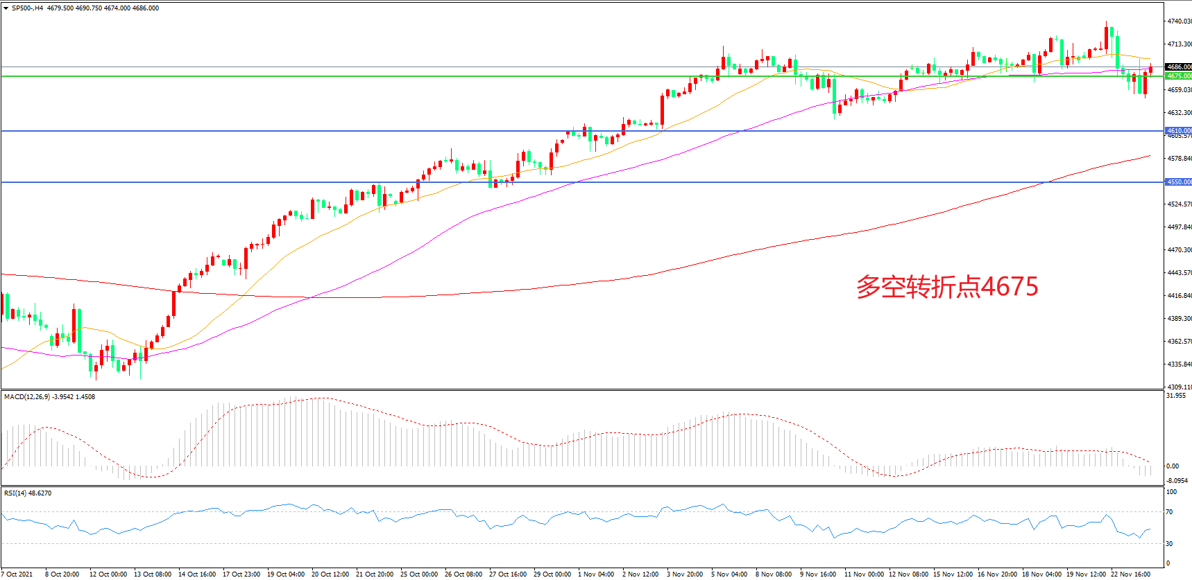 周二(11月23日),市场对鲍威尔连任后美联储提前加息的预期明显打击高成长科技股,相关板块继续下行拖累大盘,但周期股上行支持标普500探底回升,收报4684.50点。目前美联储高官不断放出“鹰派”发言,声称可能会加速Taper进程,重点关注美联储会议纪要的公布。