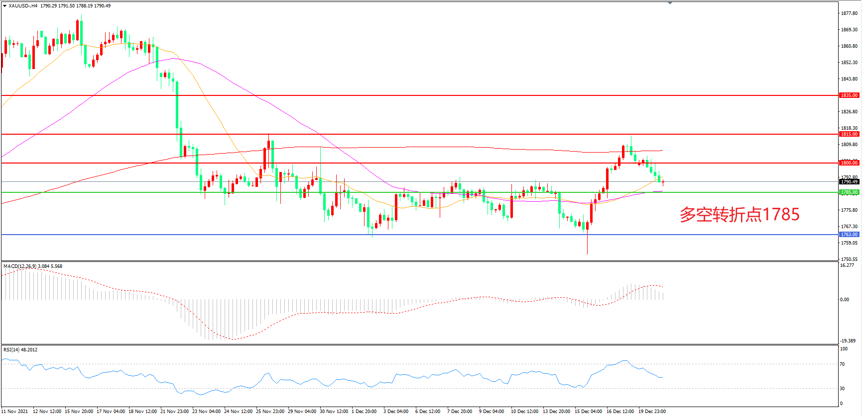 备选策略:在1785.00之下看跌,目标1763.00 1750.00