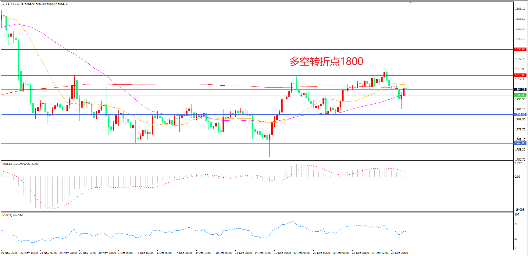 交易策略:在1800.00之上看涨,目标1815.00       1830.00