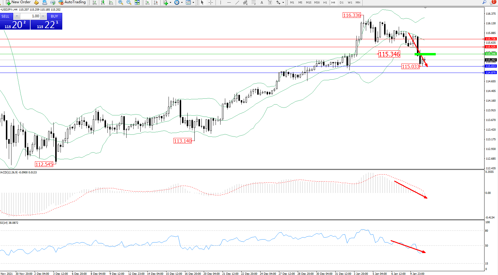 技术点评:空头动力延续布林带指标通道下轨附近持续震荡下行,低位抵达115.033位置后开始整理,短期空头动力有继续下行态势,布林带指标呈张口走势态势良好,MACD指标处于空头区域维持震荡下行走势持续,RSI指标处于50均衡线下方维持震荡下探;