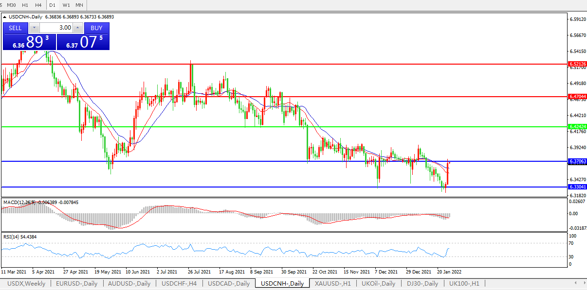 备选策略:在6.4240之上,看涨,目标价位为6.4700,然后为6.5210。
