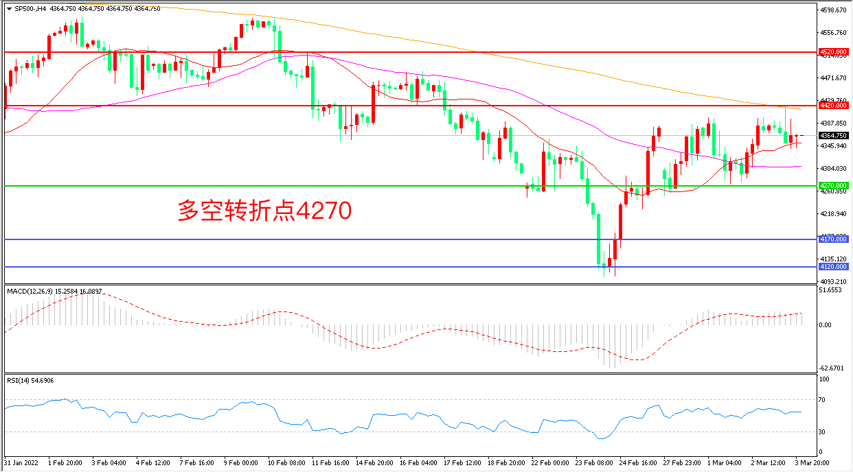 周四(3月3日),在俄乌局势引发全球经济担忧之际,美国公布的2月ISM服务业指数出乎市场意料不升反降,投资者忧心未来经济表现,标普500窄幅震荡,收报4364.75点。晚间市场将迎来最重磅的非农就业数据,如果非农数据表现不佳,可能会对美股走势形成打击,务必重点关注。