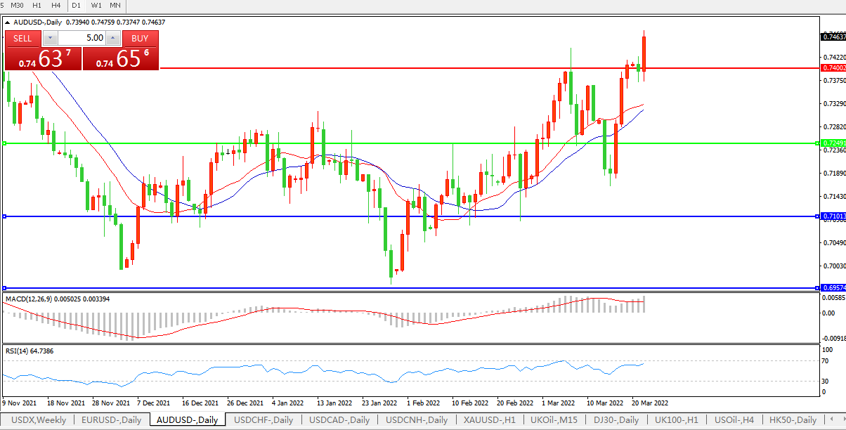 交易策略:0.7250上方看涨,目标0.7400、0.7550