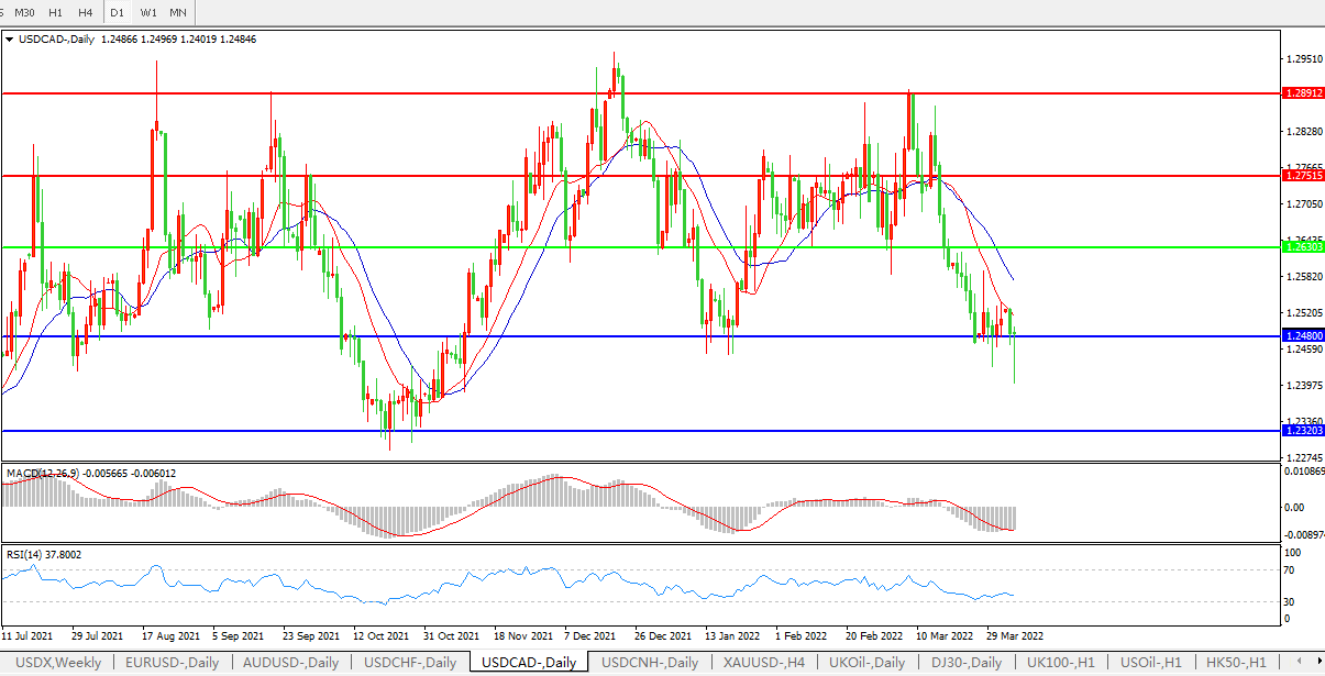 美元兑加元USDCAD 日线图: