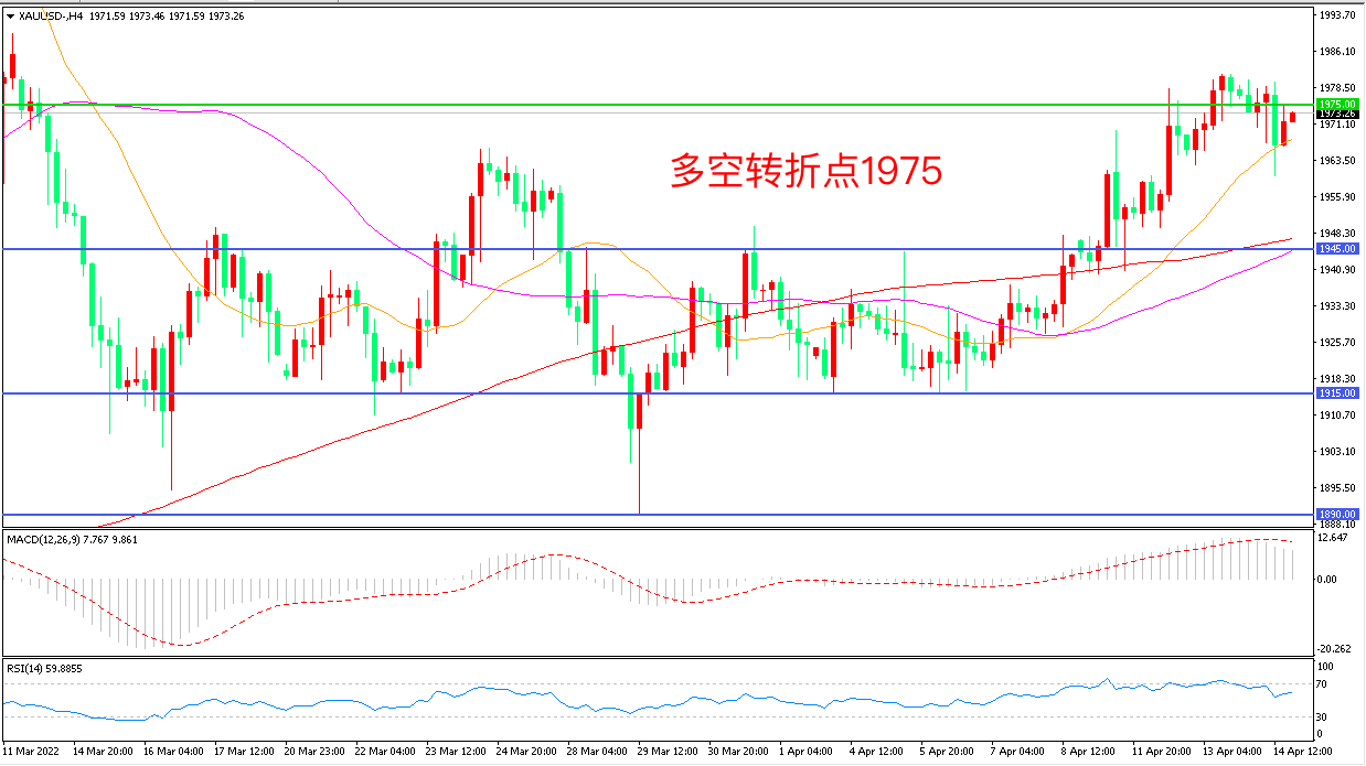 上周五(4月15日)恰逢耶稣受难日休市,黄金市场休市一天,由于美国高通胀、美指突破100大关以及地缘政治危机等多重因素叠加,使得多空意见难以取得统一,俄乌局势持续恶化带来的避险需求和进一步加剧的通胀上行压力,使金价保持在上行通道内,重点关注美联储官员表态。