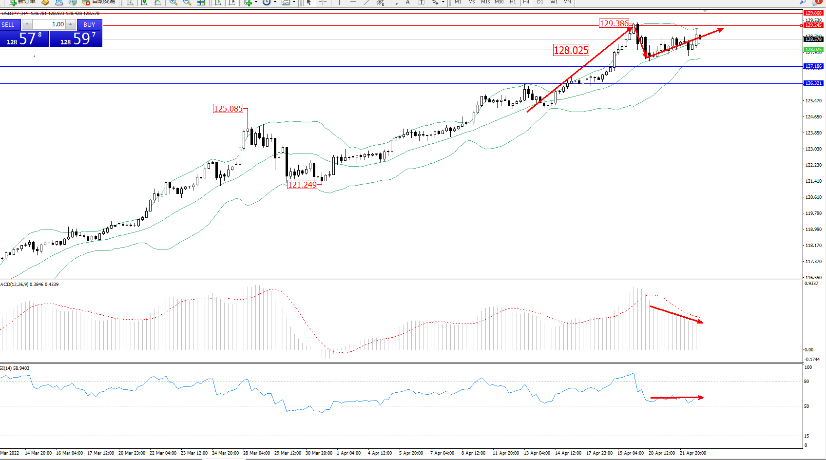 技术点评:多头动力延续布林带指标通道中上轨区间持续震荡上扬,高位抵达129.386附近节点后短暂回撤,抵达中轨附近再度拉升上扬,短期多头拉升态势良好,且未见最终止步迹象,布林带指标高位呈收口走势中,MACD指标处于多头区域维持整理下行,RSI指标处于50均衡线上側窄幅整理平移中;