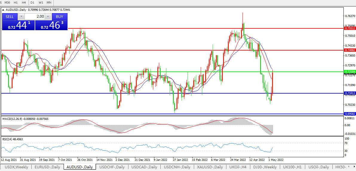 支撑位:0.7250 0.7100