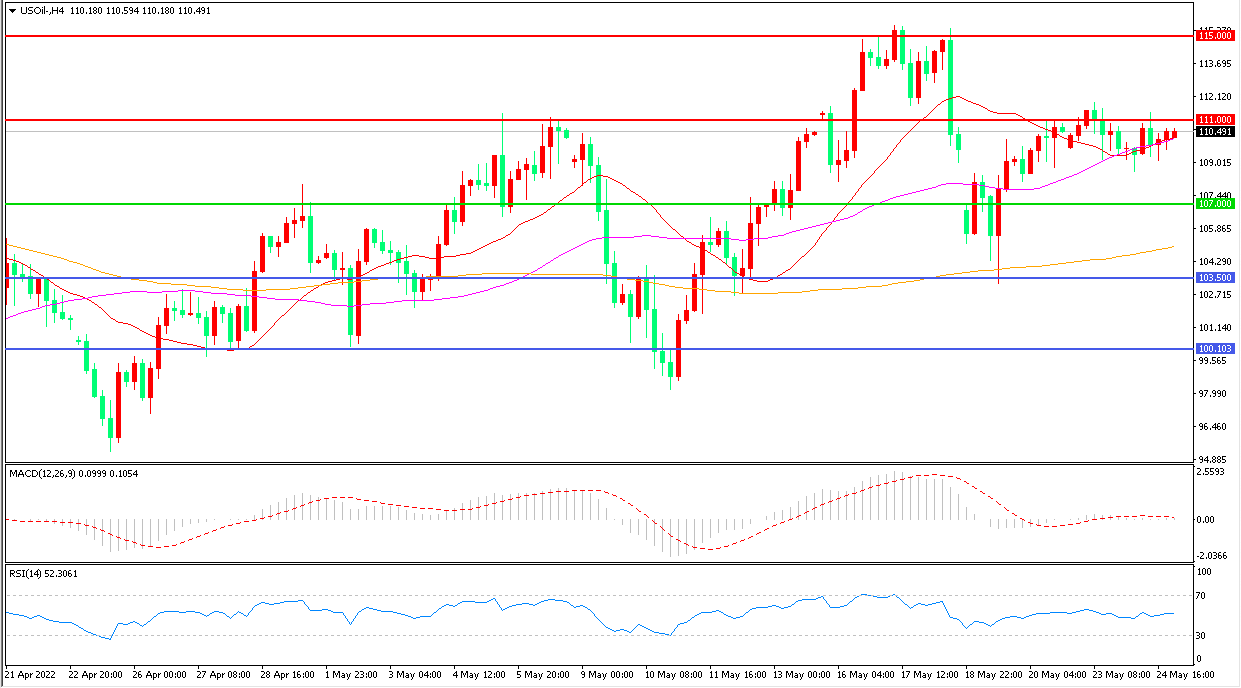 周三(5月25日),美国炼油活动激增和周末即将开启北美夏季出行高峰期为多头提供信心,美国WTI原油延续强势表现,收报110.83美元/桶。宏观层面,投资者一方面担心经济疲弱,另一方面又对美联储货币政策预期摇摆,这样的市场环境下,资金还是相对更趋向于谨慎行事,油价处在多空相对均衡的阶段,短线区间震荡概率较大。