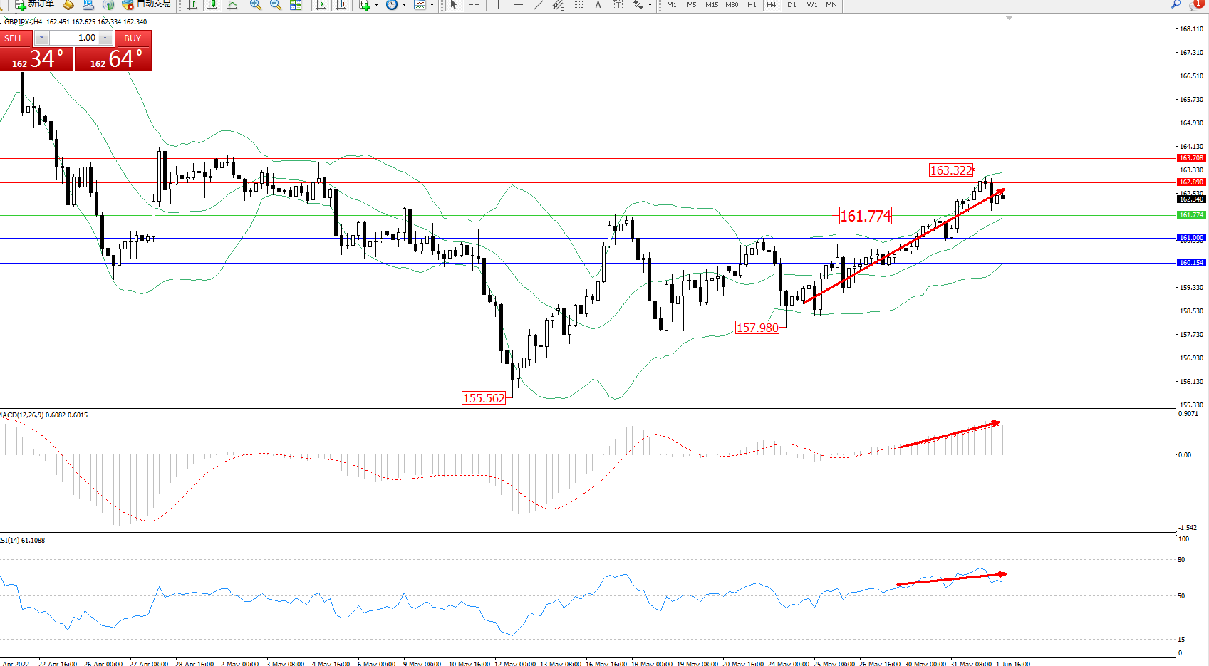 技术点评:多头动力延续布林带指标通道中上轨区间持续震荡上扬,高位抵达163.322附近节点后开始整理,短期多头上行趋势态势良好,布林带指标呈持续震荡拉升上扬走势中,高位开始有缓慢收口迹象,MACD指标处于多头区域弱势整理缓慢上移,RSI指标处于多头区域维持震荡上行;