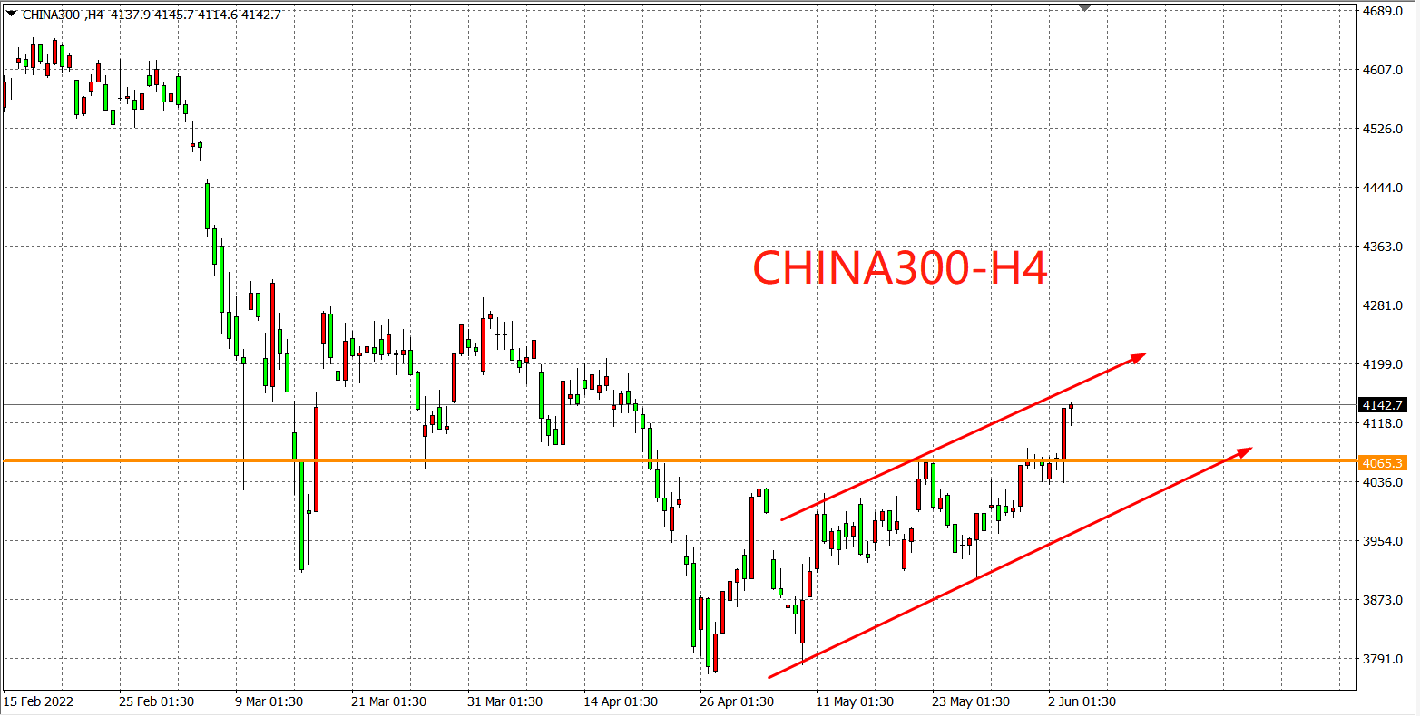 4小时图看,沪深300持续出现底部上攻,在4028支撑企稳后再度创下近期新高,短期多头趋势较强,日内有望延续涨势。