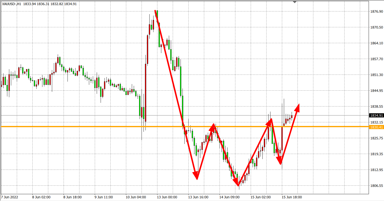 交易策略:在1830.00之下看跌,目标1850.00 1800.00