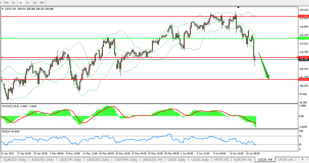 4小时图看:短线汇价延布林下轨持续下挫,布林指标开口发散下移, MACD量能柱加速放量,RSI指标快速下行,日内反弹走弱概率较大。