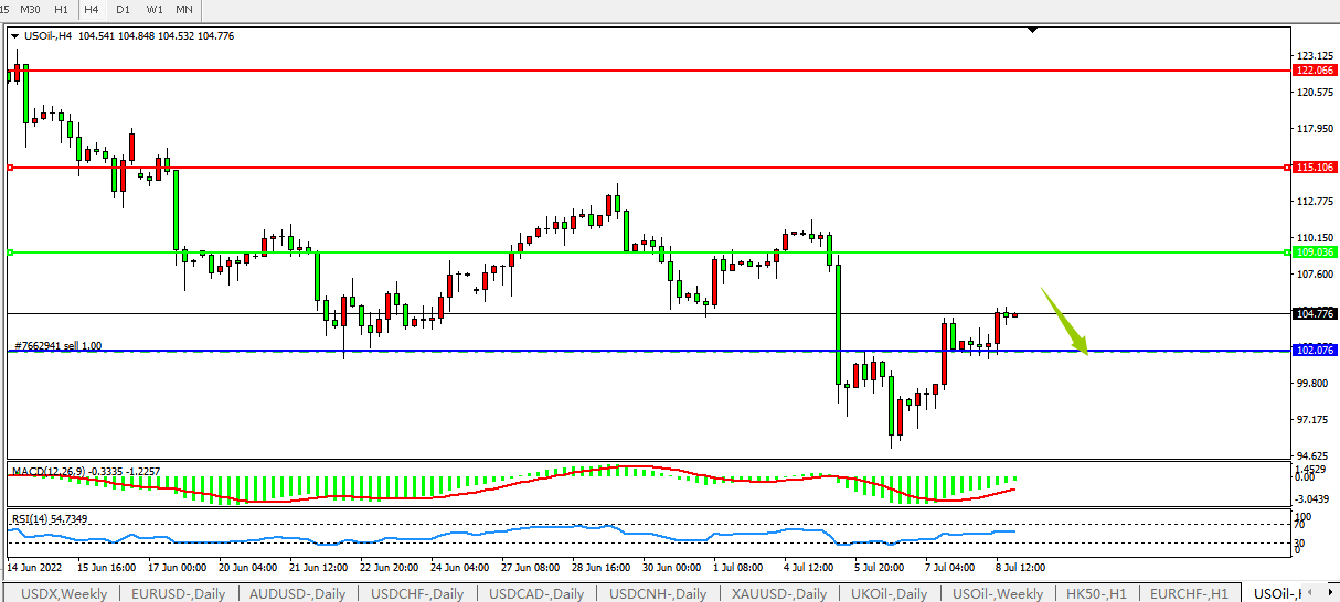 原油价格本周下跌,市场的剧烈波动和对经济衰退的担忧掩盖了供应紧张的基本面利好。西德克萨斯中质油期货周五上涨,收于每桶104美元以上,但全周仍累计下跌