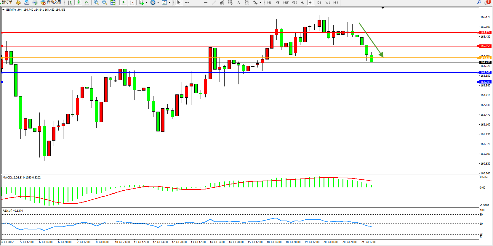 英镑兑日圆维持164.453附近震荡,英国央行行长贝利显示鹰派立场,在8月4日和9月15日的会议上,英国央行加息50个基点是最有可能的结果(高于之前的25个基点)。