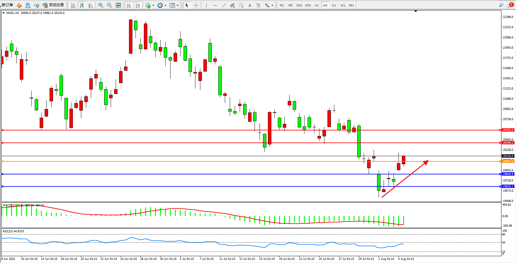 恒指HK50 4小时图