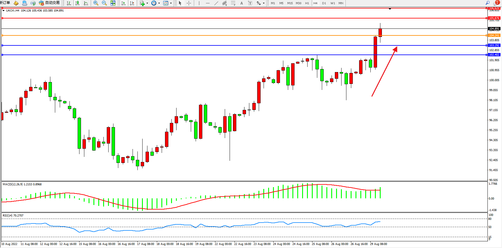 布油UKOil——4小时K线图显示: