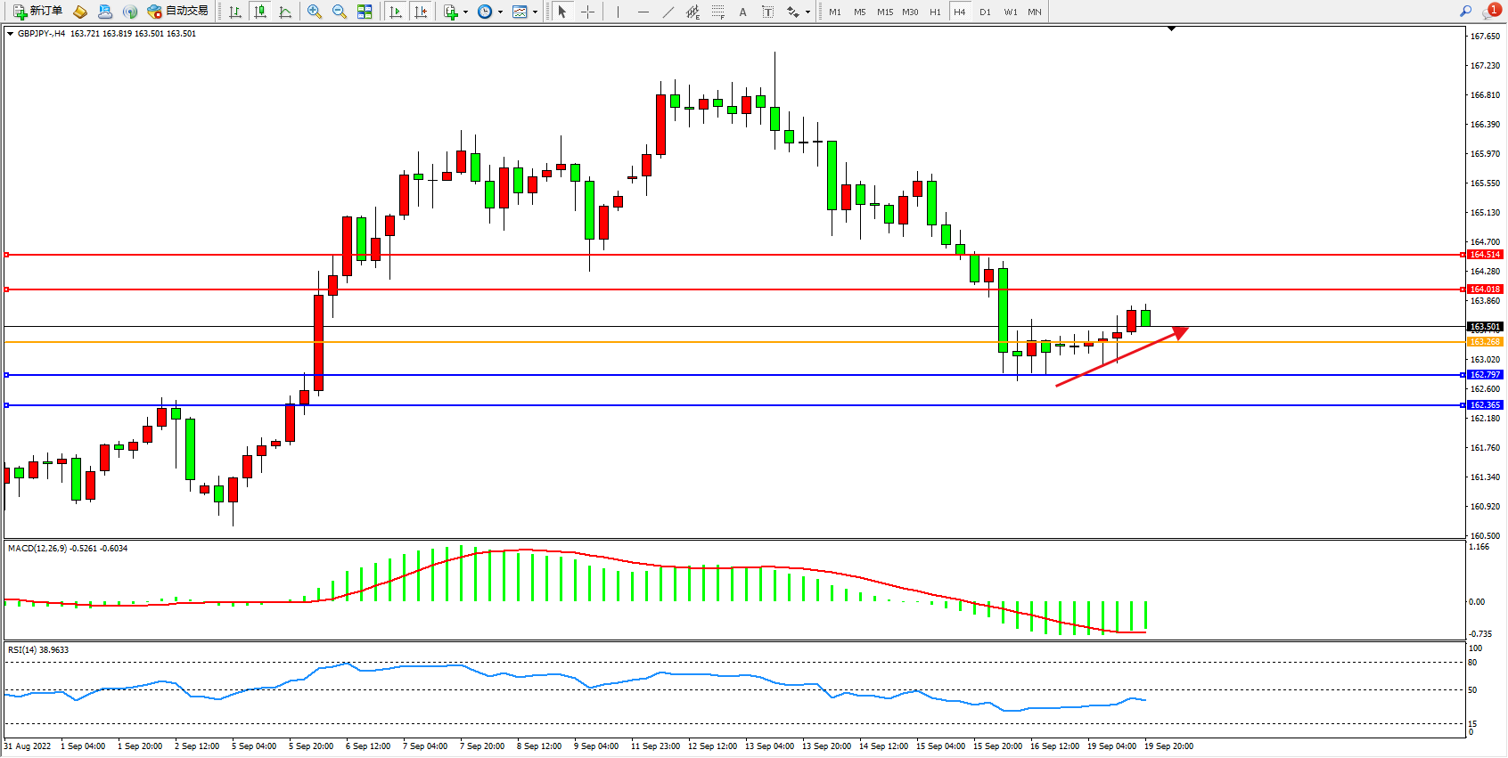 4小时图看:空头动力震荡下行,短期得到支撑开始整理,多头动力伺机入场,MACD指标处于空头区域维持整理缓慢上行,RSI指标处于空头区域维持弱势上移;