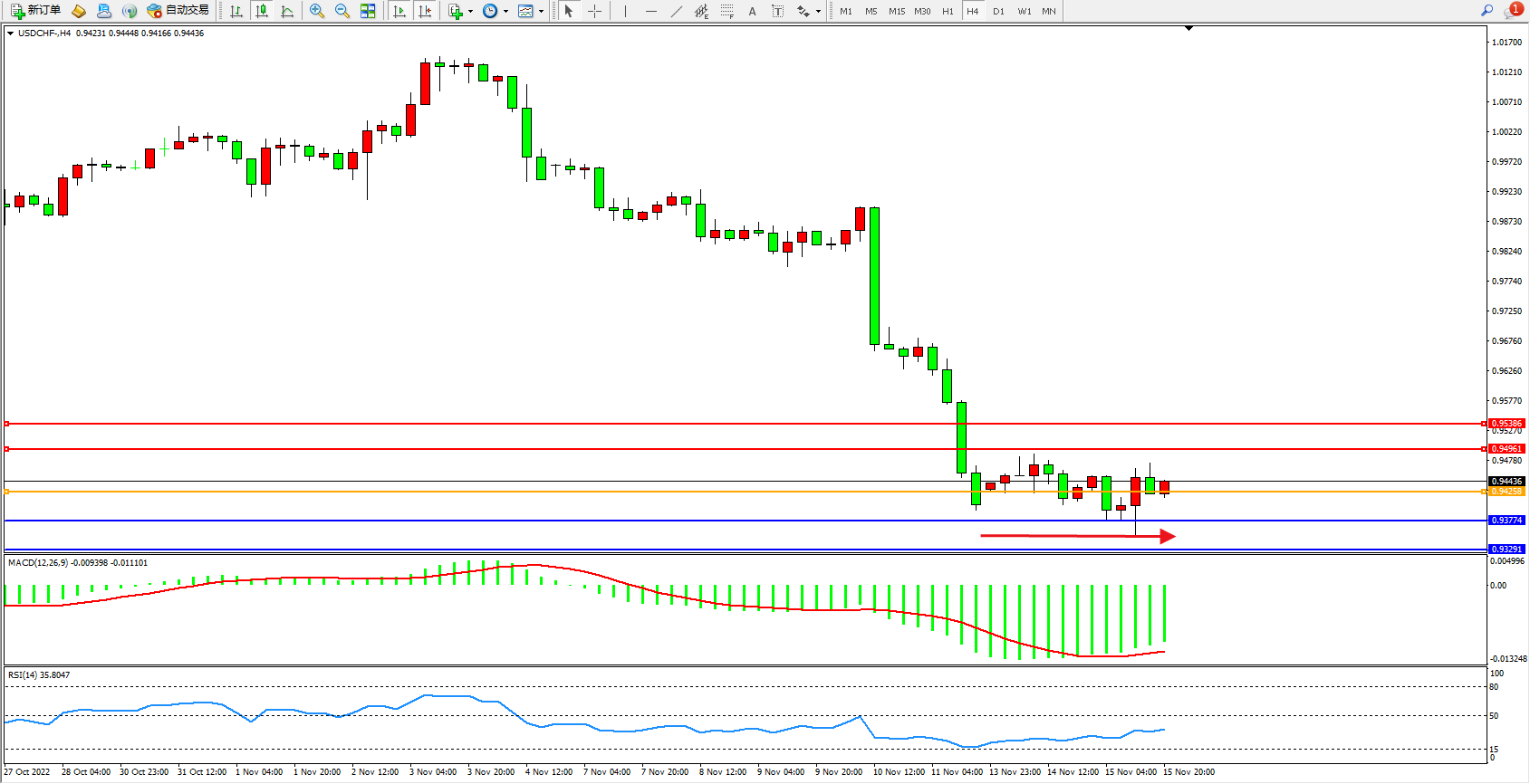 美元兑瑞郎维持0.94436附近震荡,瑞士央行主席乔丹再次发出加息警告,称央行很可能需要再次采取行动,因为通胀率仍将会处于高位。鉴于通胀水平,以及瑞士利率仍然较低的事实,不能排除瑞士央行将在12月加息的可能性。