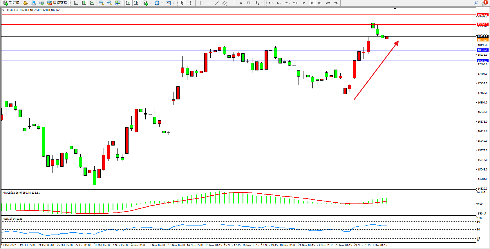 4小时图看:高位短期震荡回撤,但下行动力减弱,上行趋势依旧,MACD指标处于0轴线上側整理,RSI指标处于50均衡线上側弱势徘徊;