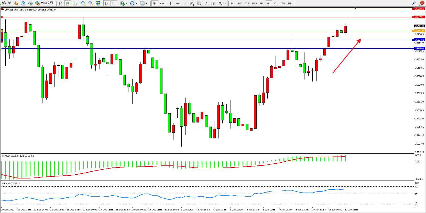 日经225指数1月11日(周三)收盘上涨249.44点,涨幅0.95%,报26425.00点。日本央行最早可能在下个月再次扩大10年期国债收益率的交易区间。基本预期是日本央行可能在3月将收益率目标区间扩大至±1%。市场预计如果日本央行认为很难纠正扭曲的收益率曲线,那么下周就采取行动的可能性也是存在的。