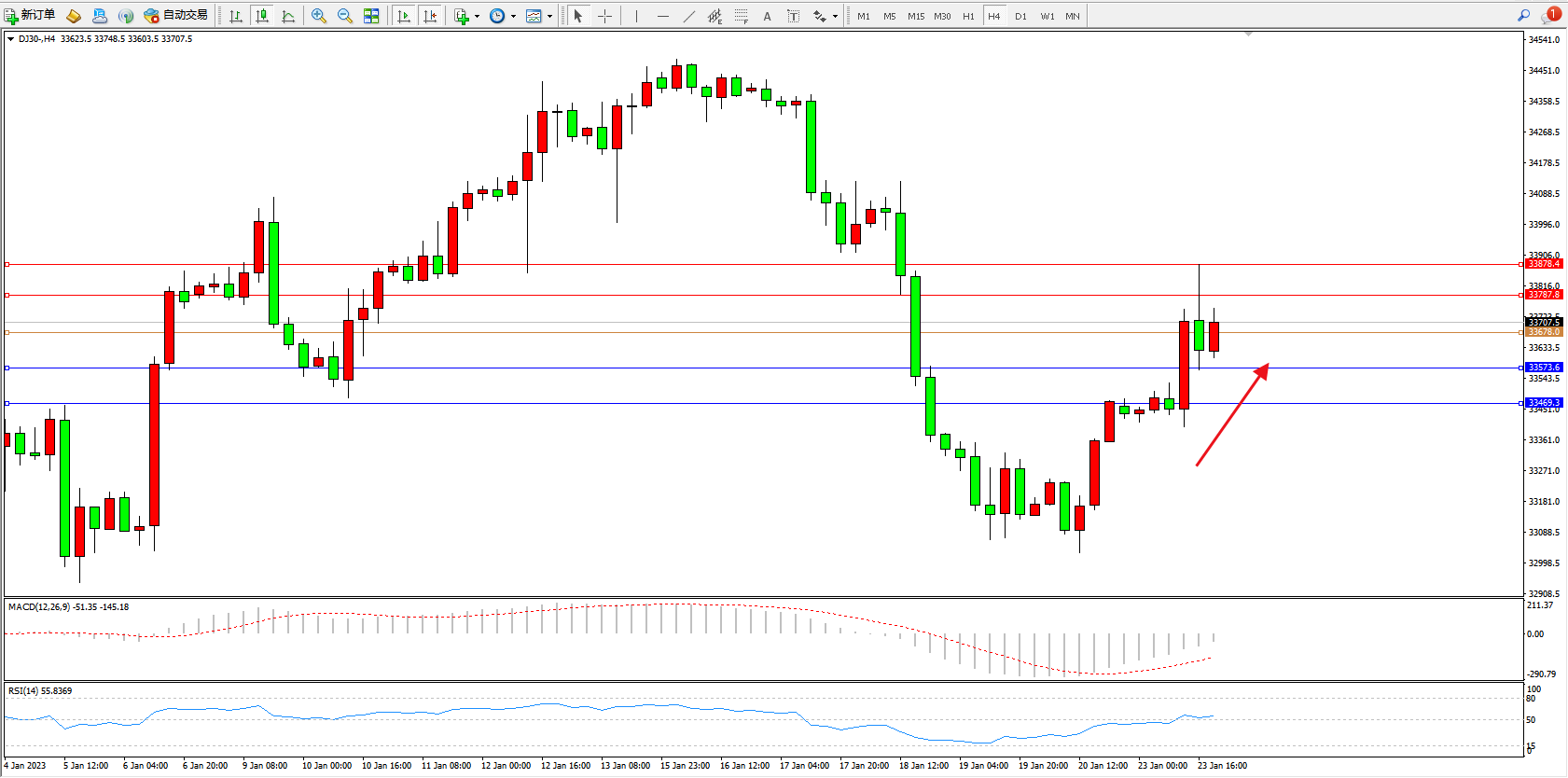 道琼斯指数1月23日(周一)收盘上涨254.07点,涨幅0.76%,报33629.56点;市场普遍预期美联储将放缓加息步伐,再次加息 25 个基点,美联储在下次会议上加息25个基点的可能性为 99.2%。然而,美联储官员尚未就加息步伐达成一致决定。虽然大多数美联储官员似乎都支持鲍威尔主席的框架,但其他人则认为有必要采取更加强硬的政策。