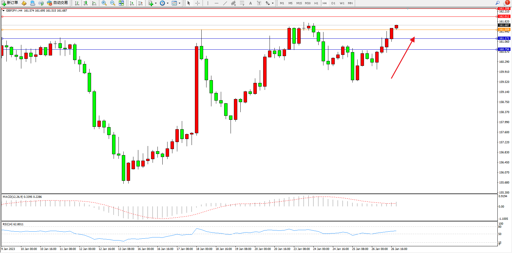 英镑兑日圆维持161.687附近震荡,1月份的CBI数据报告预示着2023年的开局不佳。报告零售销售差值录得-23,是自2022年4月以来的最大降幅。预计2月份销售额将以较缓和的速度下降,但供应商订单的大幅放缓意味着该行业正在为第一季度的低迷做准备,因为通胀抑制了消费者需求并降低了利润率。