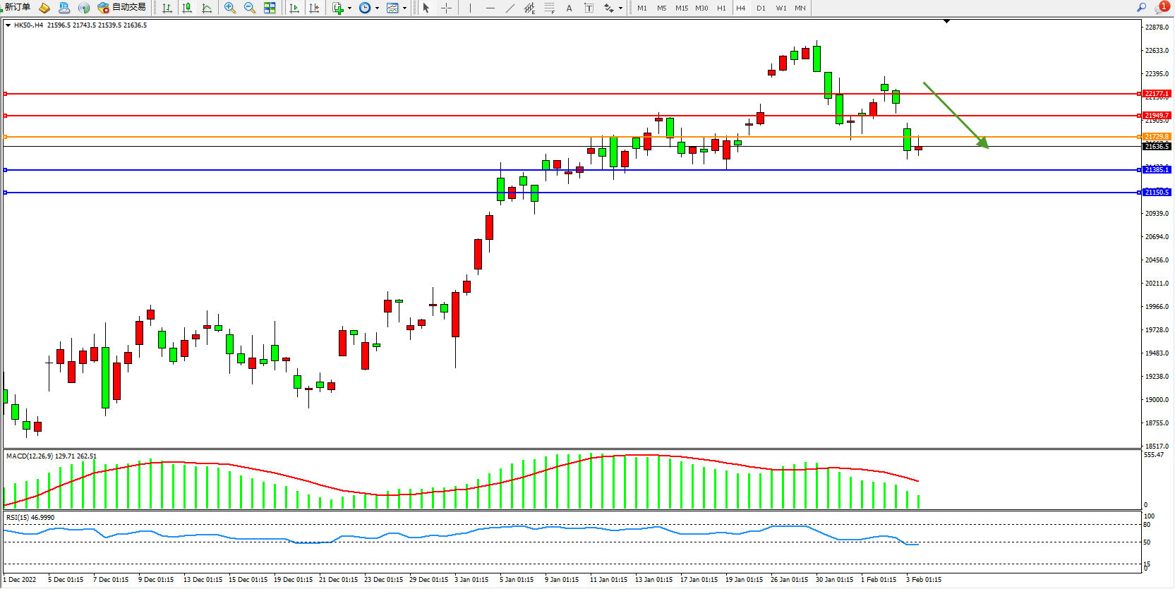 恒指HK50 4小时图