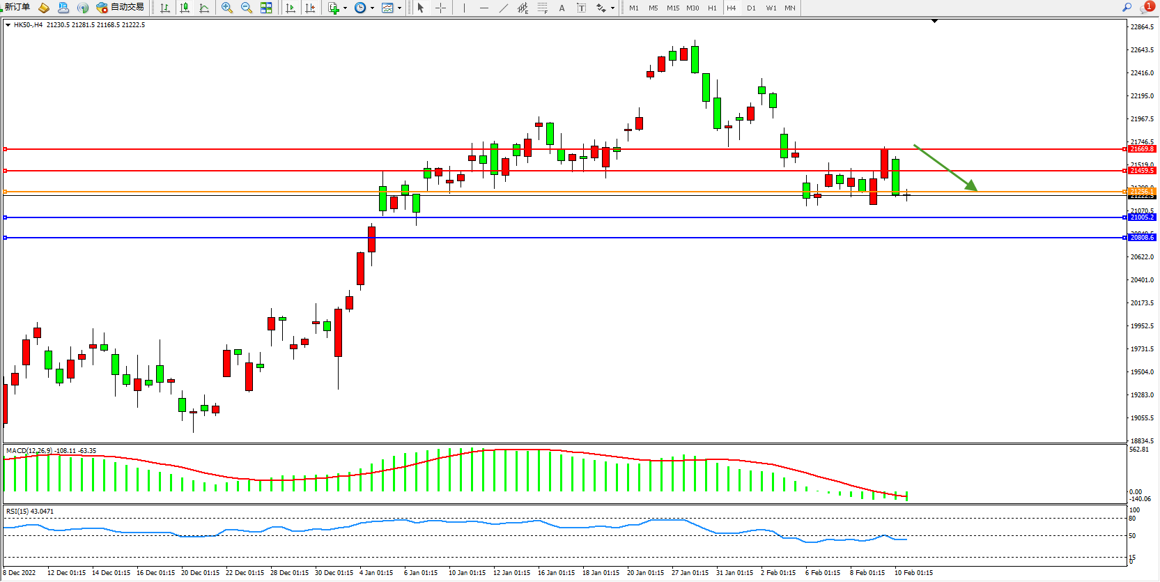 香港恒生指数2月10日(周五)收盘下跌433.94点,跌幅2.01%,报21190.42点;港股三大指数全天呈单边下跌行情,热门行业板块全挫,市场情绪尤其低迷。港股自大反弹以来,近日自高位连续回落下跌。截止收盘,恒生科技指数大跌4.58%,恒指、国指分别跌2.01%和2.56%,恒指下挫433点。大型科技股集体下跌带领大市下挫,百度跌超7%,香港本地股部分上涨,渣打集团一度大涨逾10%。南下资金净流入47.83亿港元,大市成交额为1197亿港元。