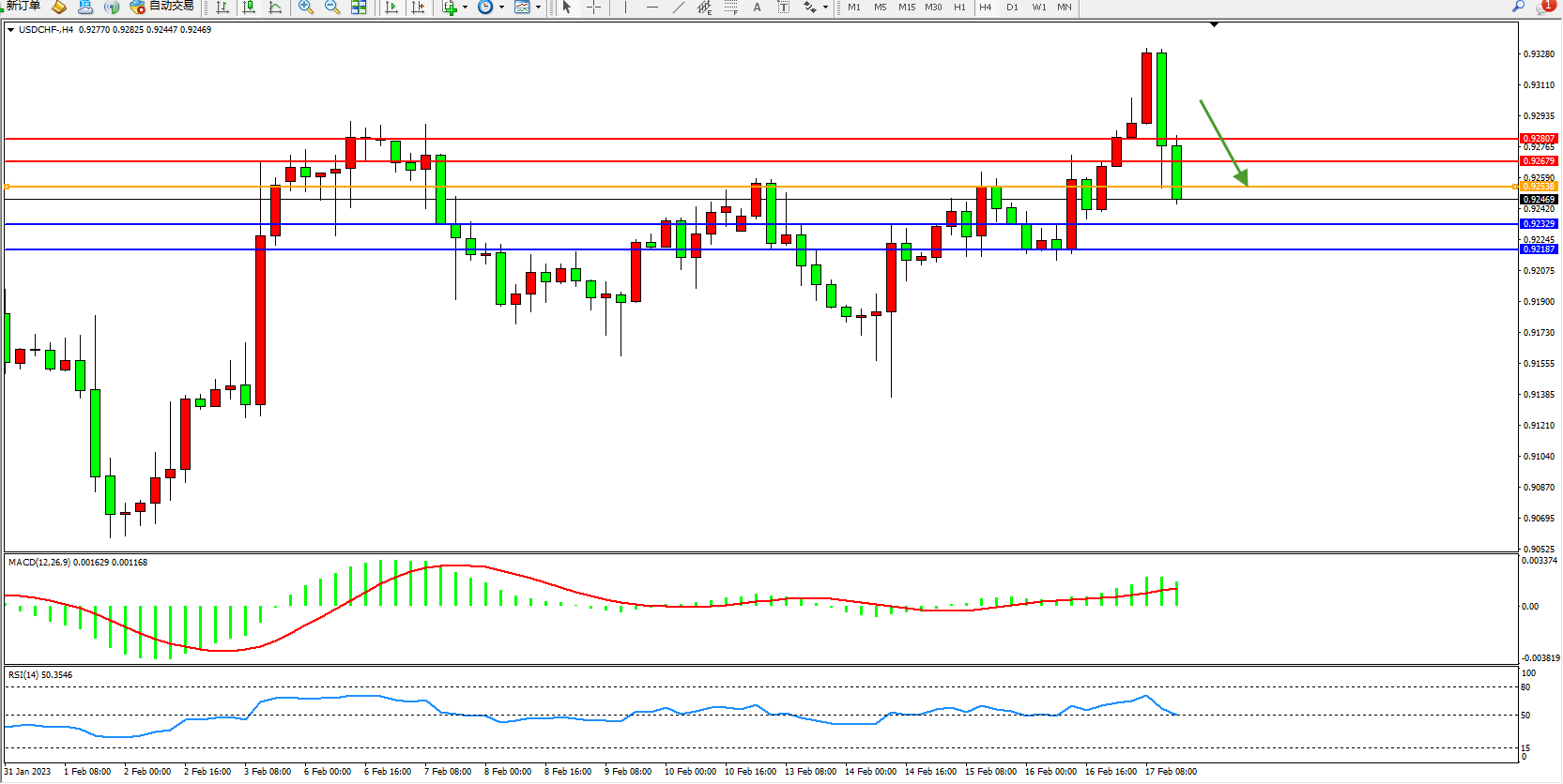 美元兑瑞郎维持0.92469附近震荡,从最近的数据表现来看,美国经济仍然健康,似乎不会很快进入衰退,市场定价正反映出高利率将维持更长时间的前景。美联储掉期市场完全定价在3月和5月各加息25个基点的预期。