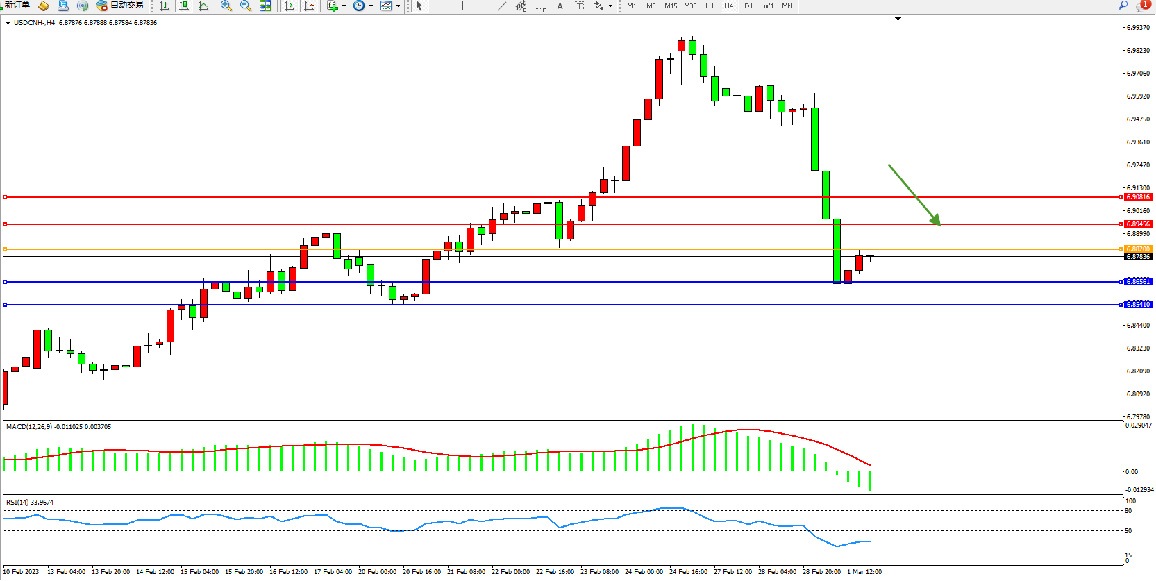 交易策略:6.88200下方看跌,目标6.86561、6.85410