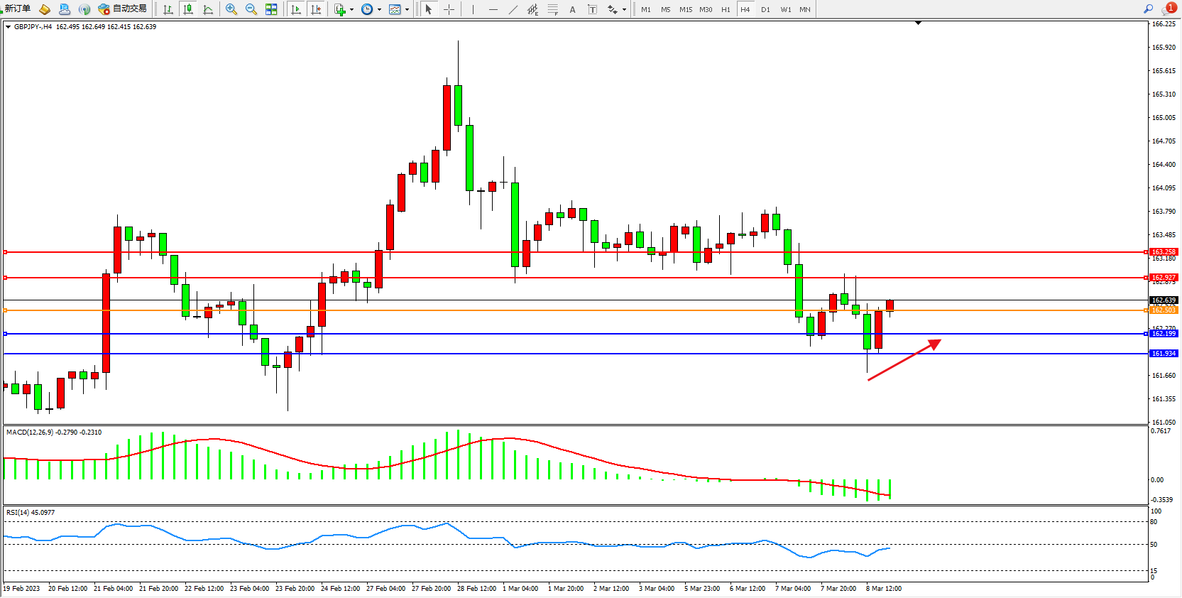 备选策略:162.503下方看跌,目标162.199  161.934