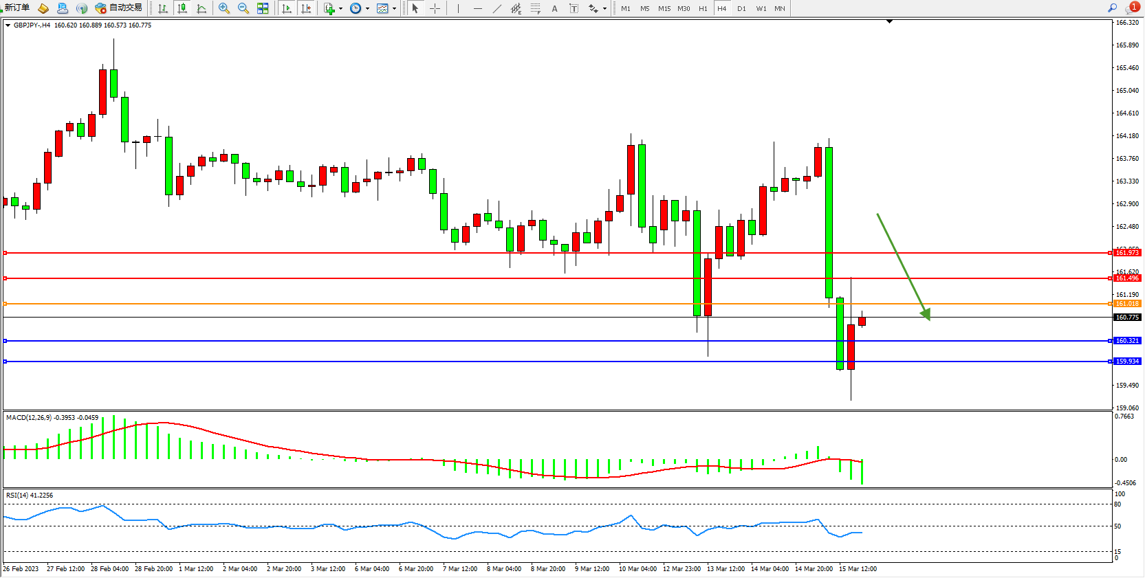 交易策略:161.018下方看跌,目标160.321  159.934
