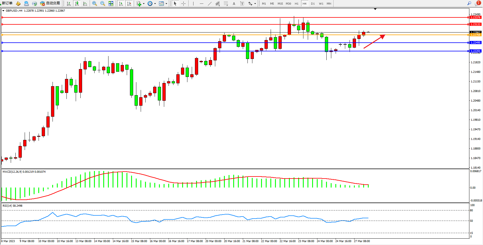 交易策略:1.22867上方看涨,目标1.23133  1.23376