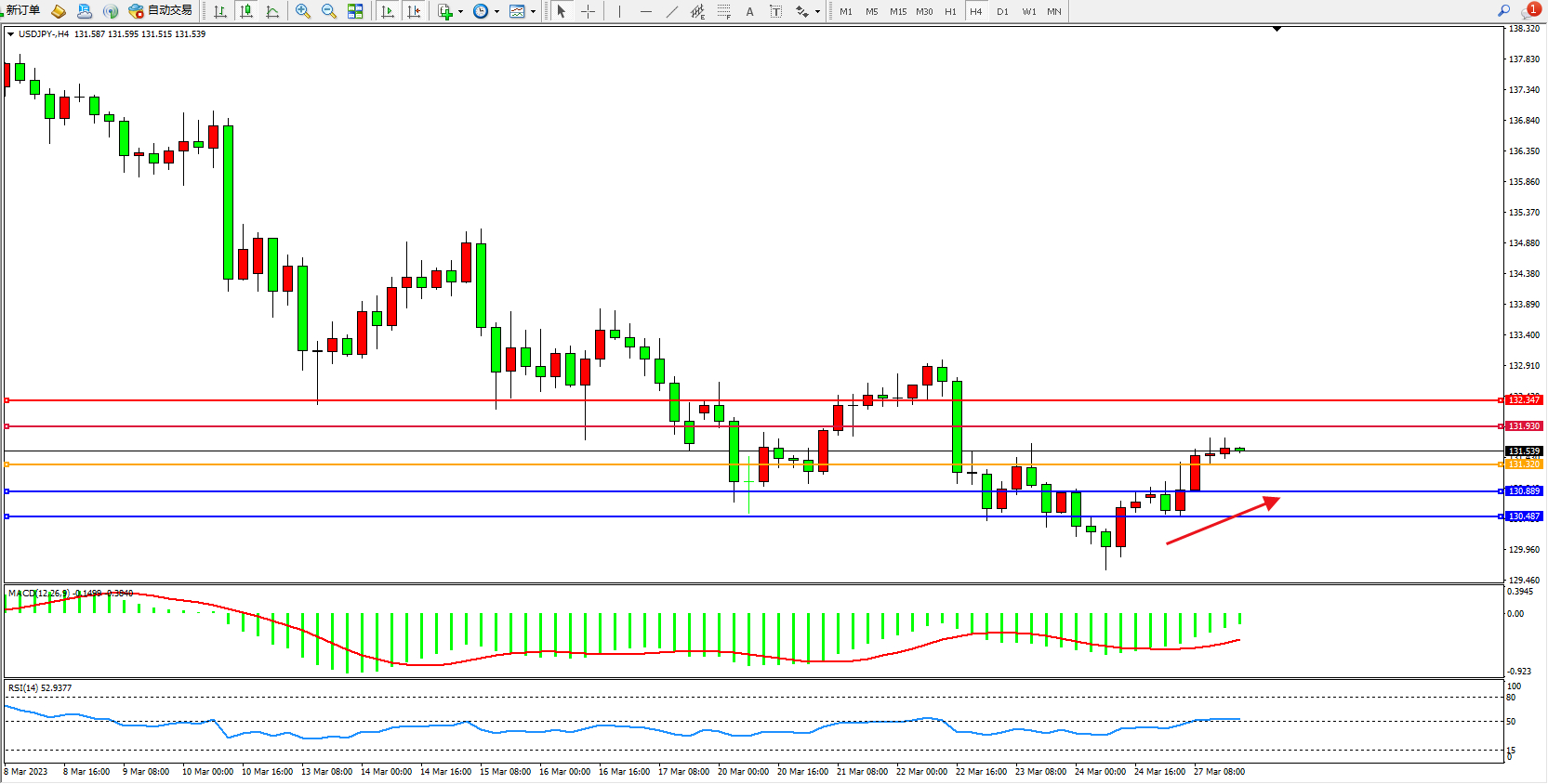 交易策略:131.320上方看涨,目标131.930  132.347
