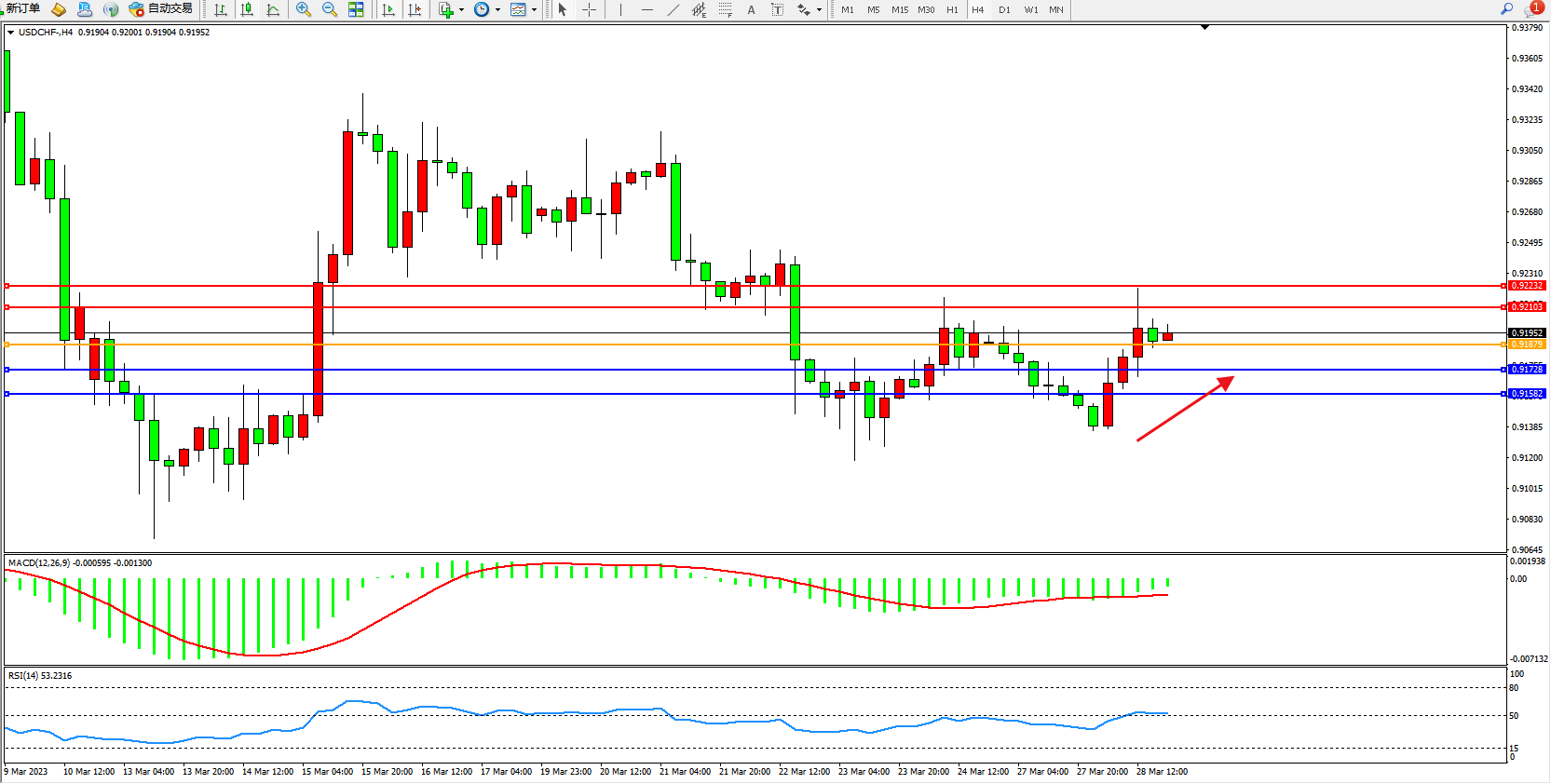 美元兑瑞郎维持0.91952附近震荡,在银行业危机取得最新进展之后,市场恢复平静,这提振了高风险资产,瑞郎面临压力,但随着美国利率快速接近峰值以及未来几个月美国经济面临衰退危险,瑞郎前景依然看涨。